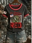 Amerykański Dzień Niepodległości Damskie Podkoszulek Nadruk Graficzny Litera Flaga Ameryki Elegancki Klasyczny Codzienny Krótki rękaw Półgolf Zwykłe topy Codzienny Czarny Czerwony / Niebieski Lato