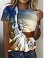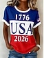Amerykański Dzień Niepodległości Damskie Podkoszulek Nadruk Graficzny Flaga Litera Zabytkowe Elegancki Klasyczny Krótki rękaw Półgolf Okrągły dekolt Zwykłe topy Codzienny Niebieski Biały Czerwony