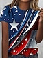 Amerykański Dzień Niepodległości Damskie Podkoszulek Nadruk Graficzny Flaga Elegancki Klasyczny Codzienny Krótki rękaw Półgolf Okrągły dekolt Zwykłe topy Codzienny Niebieski Biały Czerwony Lato Wiosna