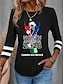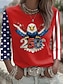 Amerykański Dzień Niepodległości Damskie Podkoszulek Nadruk Graficzny Litera Flaga Ameryki Elegancki Klasyczny Codzienny Krótki rękaw Półgolf Długie topy Codzienny Czarny Biały Czerwony Lato Wiosna