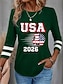 Amerykański Dzień Niepodległości Damskie Podkoszulek Nadruk Graficzny Flaga Zabytkowe Moda Elegancki Długi rękaw Półgolf Okrągły dekolt Zwykłe topy Codzienny Weekend Niebieski Czarny Czerwony Wiosna