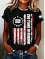 Amerykański Dzień Niepodległości Damskie Podkoszulek Nadruk Graficzny Flaga Elegancki Podstawowy Klasyczny Krótki rękaw Półgolf Okrągły dekolt Zwykłe topy Codzienny Niebieski Czarny Biały Zielony