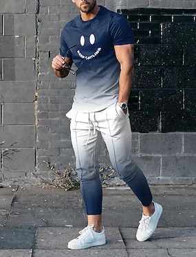 Męskie Kreskówki 2szt Zestawy tee Koszulka Krótki rękaw Długie spodnie Półgolf Sportowy Designerskie Codzienny Na zewnątrz Urlop Codzienny Druk 3D Wiosna i lato Niebieski