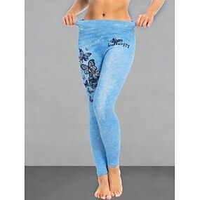 Damskie Getry Przytulne legginsy Urlop Zabytkowe Styl etniczny Pełna długość Wysoka talia Graficzny Motyl Drukowanie Komfort Wygodny Elastyczny Codzienny Urlop Święto Niebieski Granatowy Królewski