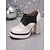 damskie buty na platformie za kolano – czarno-białe, elastyczne, ze sztucznej skóry, buty na wysokim obcasie na modne wydarzenia i imprezy