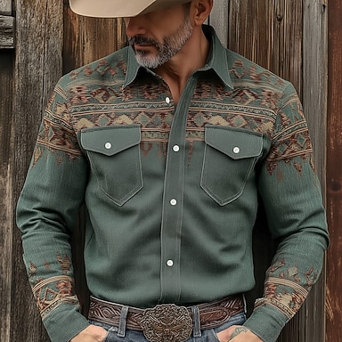 Męskie Geometryczny Etnické Koszula Koszula westernowa Kowbojska koszula Długi rękaw Vintage Retro Plemienny Na zewnątrz Codzienny Odzież robocza Lato Wiosna Jesień Wieczorne Dwie kieszenie z przodu