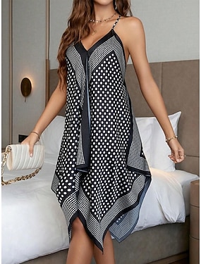Damskie Sukienka midi Sukienka Boho Codzienne sukienki Sukienka na ramiączkach Elegancja Moda Nowoczesny Na zewnątrz Urlop Wyjściowe Regularny Groszki Bez rękawów W serek Czarny Biały Lato Wiosna