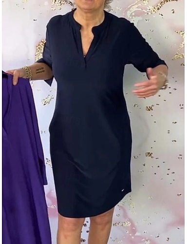 Damskie Sukienka do kolan Codzienne sukienki Elegancja Moda Nowoczesny Na zewnątrz Urlop Wyjściowe Regularny Równina Krótki rękaw W serek Czerwony Fioletowy Khaki Ciemnoniebieski Lato Wiosna