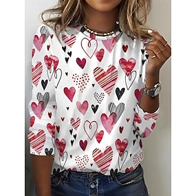 Walentynki Damskie Podkoszulek Nadruk Serce Graficzny Moda Elegancki Klasyczny Długi rękaw Półgolf Zwykłe topy Codzienny Weekend Czerwony Lato Wiosna Jesień