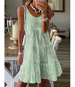 Sukienka mini dla kobiet Sukienka petite Sukienka plażowa Sukienka A-line Sukienka letnia Podstawowa Casual Na świeżym powietrzu Wakacyjne Codzienna Regular Fit Kwiatowa Bez rękawów Dekolt w