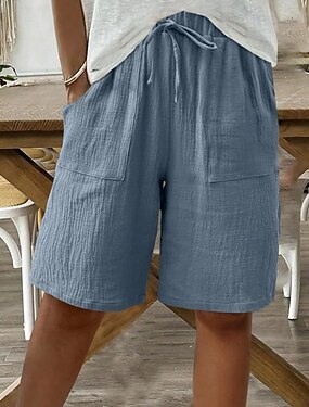 Damskie Szorty Spodnie Letnie szorty %100 Pamuk Moda Moda miejska Do kolan Natutalne Równina Kieszeń Elastyczna konstrukcja ze sznurkiem Wygodne Na zewnątrz Święto Weekend Jasny błękit nieba Szary
