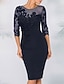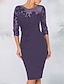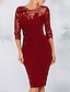 Ołówkowa / Kolumnowa Do kolan Sukienka na imprezę Sukienka koktajlowa Sukienka obcisła Rękaw 3/4 Linia złudzenia Elegancja Gość weselny Satyna Koronka Sukienka dla matki panny młodej z Haft nakładany