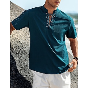 Męskie Koszula Koszula lniana Styl Wikingów Letnia koszula Stroje plażowe Zapinana na guziki koszula Jednokolorowe Urlop Przeklęty Czarny Biały Rumiany róż Khaki Krótki rękaw Kołnierz Lato Wiosna i