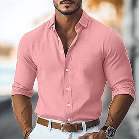 Męskie Koszula Koszula lniana Letnia koszula Koszula plażowa Zapinana na guziki koszula Równina Urlop Przeklęty Czarny Rumiany róż Zielony Jasnoniebieski Długi rękaw Kołnierz Wiosna i lato Na każdy