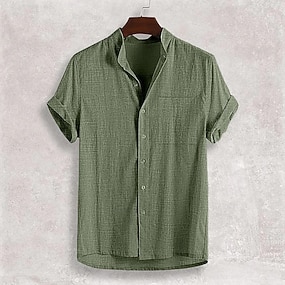 Męskie Koszula bawełniano-lniana Równina Urlop Czarny Biały Zielony Rękaw 1/2 kołnierz dziadka Lato Odzież Przycisk w dół