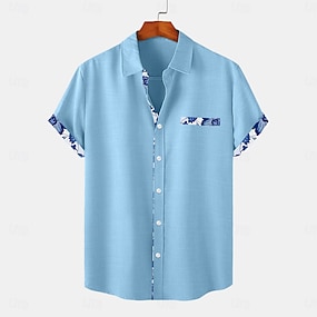 Męskie lniana koszula Letnia koszula Codzienna koszula Koszula plażowa Koszula hawajska Kwiat / Rośliny Urlop Hawajskie Niebieski Krótki rękaw Klapa Wiosna i lato Odzież Nadruk