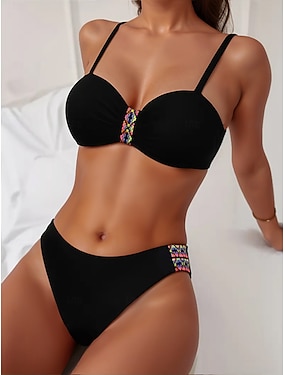 Damskie Stroje kąpielowe 2 szt Bezczelny Kostium kąpielowy Ściągana na sznurek Urlop Stroje plażowe Jednokolorowe Bez rękawów Kostiumy kąpielowe