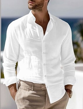Męskie Koszula Koszula lniana Biała bawełniana koszula Codzienna koszula Koszula bawełniano-lniana Bawełniana koszulka Równina Urlop Hawajskie Biały Morelowy Długi rękaw Obroża obozowa Wiosna i jesień