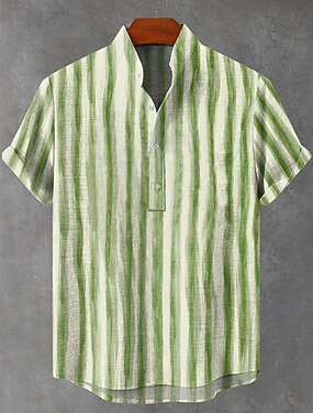 Męskie Koszula lniana Letnia koszula Stroje plażowe Zapinana na guziki koszula Plemienny Urlop Codzienny Niebieski Zielony Khaki Krótki rękaw Wieczorne Lato Wiosna Odzież