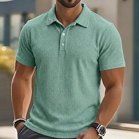 Męskie Koszula golfowa Pikowe koszulki polo Biznes Codzienny Prążkowany kołnierzyk polo Krótki rękaw Moda Podstawowy Jednokolorowe Guziki Lato Wiosna i jesień Regularny Czarny Biały Jasnozielony