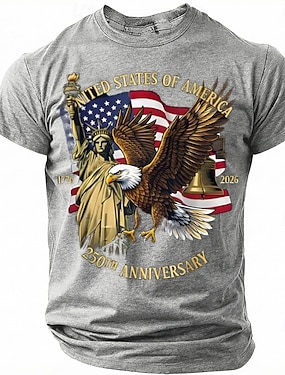 4 lipca 2026 250. Dzień Pamięci Męska Patriotyczna Patriot 3D Druk Amerykańska Flaga Weteran Crew Neck Koszulka z krótkim rękawem Ulica