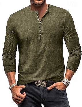 Męskie Graficzny Zabytkowe Koszula Henley Długi rękaw Zabytkowe Moda Śłodkie Codzienny Święto Wyjściowe Wiosna i jesień Niebieski Rumiany róż Zielony Khaki Henley Koszulka Henley