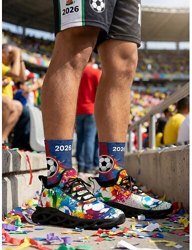 kolorowe buty sportowe dla mężczyzn z nadrukiem piłkarskim – lekkie, przewiewne buty sportowe z graffiti, wygodne buty sportowe dla kibiców i na imprezy &odzież codzienna