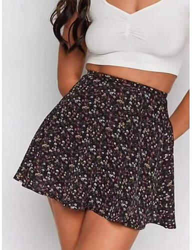 Damskie Spódnica wakacyjna Moda Codzienny Mini Wysoka talia Spódnice Kwiatowy Nadruk Średnio elastyczny Codzienny Ulica Niebieski Czarny Żółty Czerwony Lato Poliester