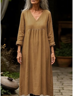Damskie Sukienka maxi Pamuk Karışımı Sukienka koszulowa Sukienka typu kaftan Codzienne sukienki Podstawowy Codzienny Codzienny Urlop Randka Regularny Równina Krótki rękaw W serek Khaki Ziele