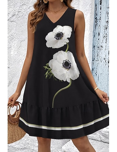 Damskie Sukienka mini Sukienka letnia Sukienka A line Letnie sukienki Codzienny Codzienny Święto Regularny Kwiaty Graficzny Bez rękawów W serek Czarny Lato Wiosna