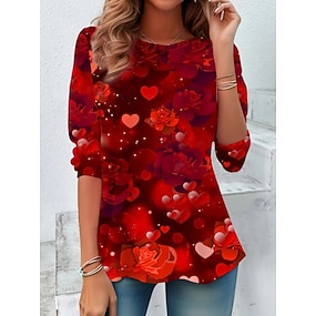 Walentynki Damskie Podkoszulek Nadruk Serce Graficzny Moda Elegancki Klasyczny Długi rękaw Półgolf Zwykłe topy Codzienny Weekend Czerwony Lato Wiosna Jesień