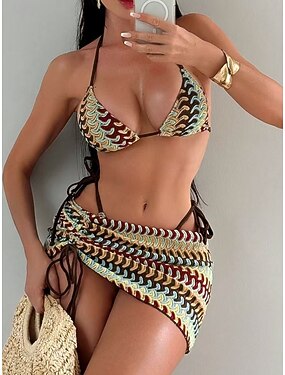 Damskie Stroje kąpielowe Bikini Trzyczęściowy Majtki Kostium kąpielowy Odkryte plecy Szczupła Urlop Stroje plażowe Geometryczny W serek Bez rękawów Kostiumy kąpielowe