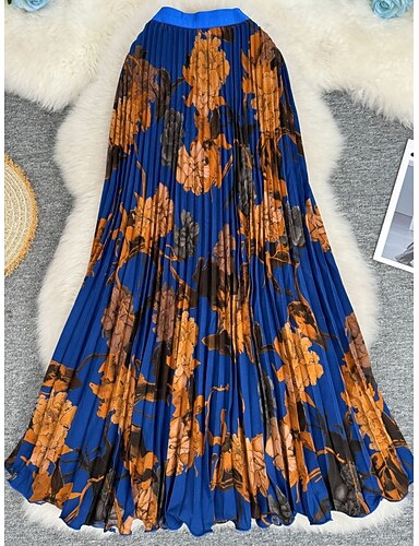 Damskie Elegancja Moda Codzienny Maxi Średni stan Spódnice Kwiaty Z marszczeniami Ściągana na sznurek Średnio elastyczny Ulica Wyjściowe Niebieski Czarny Żółty Czerwony Lato Poliester