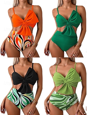 Damskie Stroje kąpielowe Jeden kawałek Bikini Kostium kąpielowy Niejednolita całość Urlop Stroje plażowe Kolorowy blok W serek Bez rękawów Kostiumy kąpielowe