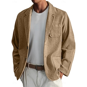 Męskie Marynarka Formalny Ślub Rocznica Elegancja Ciepłe Jesień Zima Poliester Spandeks Jednokolorowe Pojedynczy biust Dwuprzyciskowy Blezer Ciemnoszary Czarny Ciemnozielony Brązowy