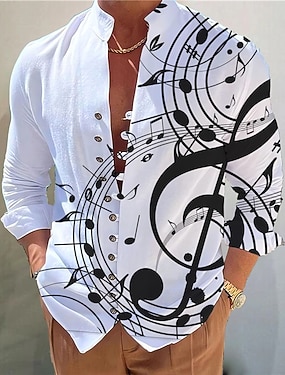 Męskie Muzyka Uwagi Koszula Zapinana na guziki koszula Długi rękaw Moda Designerskie Codzienny Urlop Codzienny Wyjściowe Jesień Wiosna i lato Kołnierz stawiany Nadruk Czarny Żółty Niebieski Fioletowy