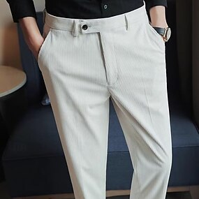 Męskie Uroczystość wręczenia dyplomów Garnitury Spodnie sztruksowe Spodnie Neapol Spodnie Guziki Kieszeń Jednokolorowe Komfort Formalny Impreza Praca Moda Styl klasyczny Czarny Beżowy Średnio