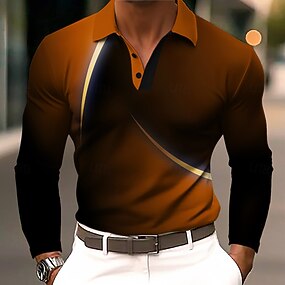 Męskie Geometryczny Tenké Gra polo Długi rękaw Koszulki polo Klapa Biznesowy swobodny Athleisure Dzienne zużycie Druk 3D Guziki Wiosna Jesień Zima Niebieski Fioletowy Pomarańczowy