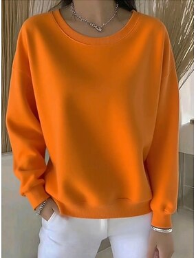Damskie Bluza z kapturem Równina Codzienny Długi rękaw Okrągły dekolt Zwykłe topy Dom Praca Ulica Biały Rumiany róż Pomarańczowy Zielony Wiosna