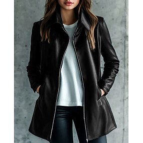 Damskie Skórzana kurtka Koszula kurtka Kurtka Odporność na wiatr Zatrzymujący ciepło Zamek Kieszeń Guziki Elegancja Moda Klasyczny Nowoczesny Jednokolorowe Urlop Praca Ulica Codzienny Guziki