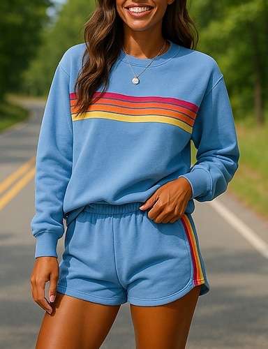 Święta Damskie Komplety dresowe Luźne dresy Zestawy wypoczynkowe 2-częściowe Spodnie szerokie nogawki Prążki Zestawy odzież Wiosna Jesień Niebieski Zielony Na zewnątrz Podróże Jogging Długi rękaw