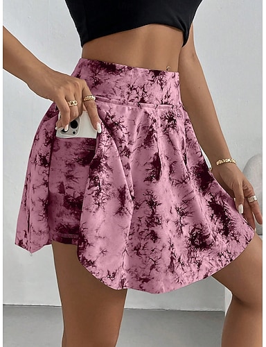 Damska Krótka Spódnica Z Szortami Slim Moda Casual Mini Wysoki Stan Spódnice Graficzne Tie Die Elastyczne Codzienne Biały Różowy Szary Lato Dzianina Poliester