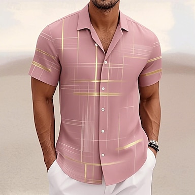 Męskie Gradient Wzór geometryczny Koszula Zapinana na guziki koszula Krótki rękaw Moda Designerskie Codzienny Na zewnątrz Codzienny Lato Wiosna Wieczorne Nadruk Rumiany róż Niebieski