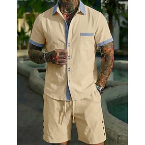 Męskie Koszula lniana 2 elementy Zestaw koszul I Szorty Lniane szorty Szorty plażowe Ustawić Kontrastowy kolor Codzienny Na zewnątrz Urlop Wieczorne Krótki rękaw Lato Moda Codzienny Wygodny Odzież