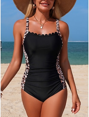 Damskie Stroje kąpielowe Bikini 2 szt Kostium kąpielowy Szczupła Odkryte plecy Urlop Stroje plażowe Panterka Łódeczka Bez rękawów Kostiumy kąpielowe