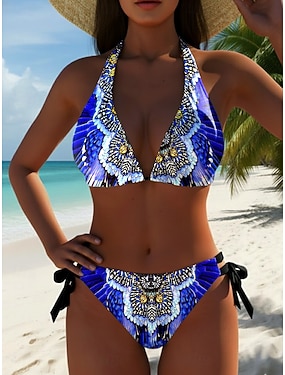 Kostium kąpielowy dwu częściowy dla kobiet bikini odważny smukły bez pleców wakacyjne plażowe ubranie graficzny geometryczny dekolt w kształcie litery V bez rękawów