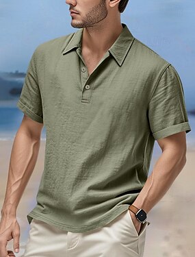 Męskie Koszula lniana Koszula Popover Letnia koszula Codzienna koszula Koszula Henley Naszywka Urlop Codzienny Zielony Krótki rękaw Kołnierzyk chiński Lato Wiosna Odzież