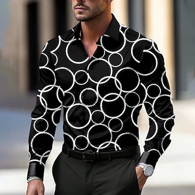 Męskie Koło Wzór geometryczny Koszule eleganckie Zapinana na guziki koszula Długi rękaw Biznesowy swobodny Biznes Codzienny Jesień Zima Wiosna i lato Kołnierzyk koszuli Zapiąć Druk 3D Czarny