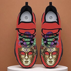 Męskie czerwone buty karnawałowe Mardi Gras z wzorem maski żywe festiwalowe buty dla mężczyzn wygodne buty na sznurówki na karnawał parady i imprezy okolicznościowe