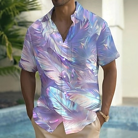 Męskie Kształt listka Kolor gradientu Rośliny Tropikalne Koszula hawajska Zapinana na guziki koszula Koszula Aloha Krótki rękaw Hawajskie Urlop Lato Wiosna Wieczorne Druk 3D koszule z kołnierzykiem